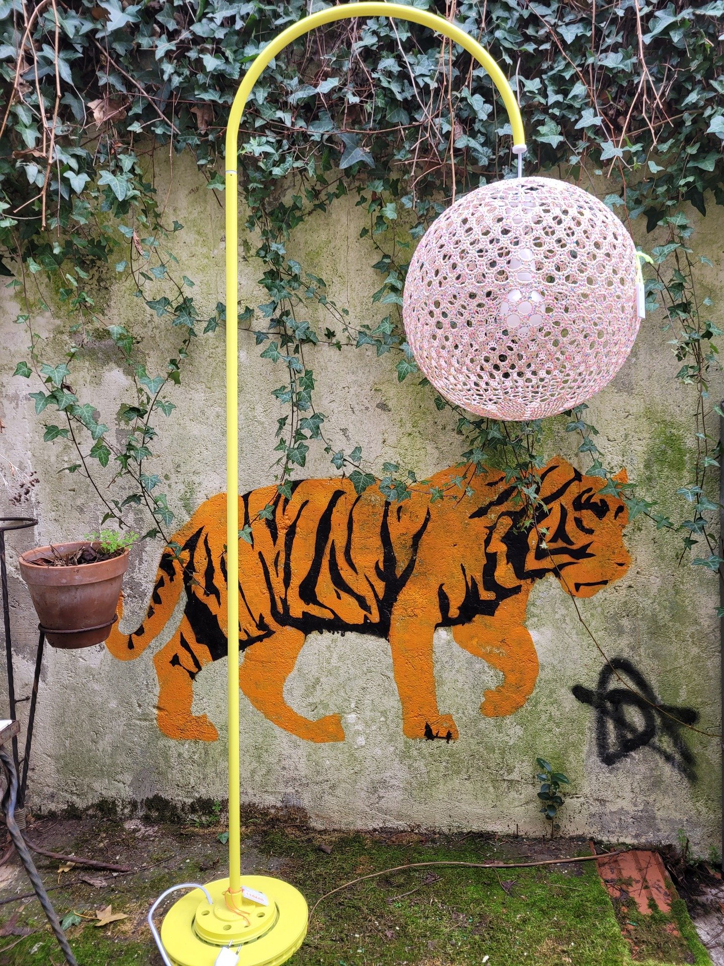 Le pompon : les globos sont des lanternes lumineuses faites au crochet, colorées et vintages avec différents formats, motifs et couleurs , sur pied ou en suspension