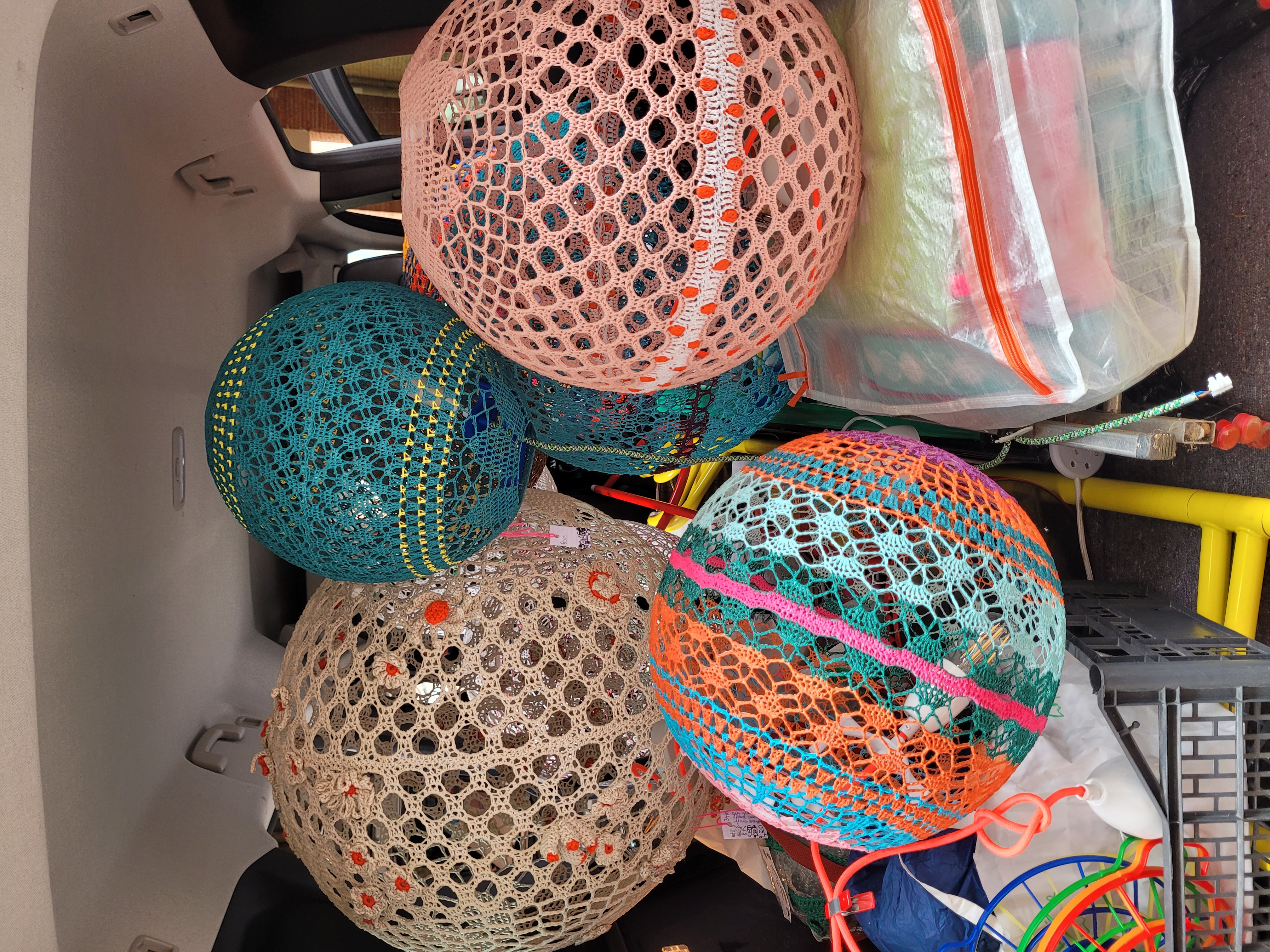 Le pompon : les globos sont des lanternes lumineuses faites au crochet, colorées et vintages avec différents formats, motifs et couleurs , sur pied ou en suspension